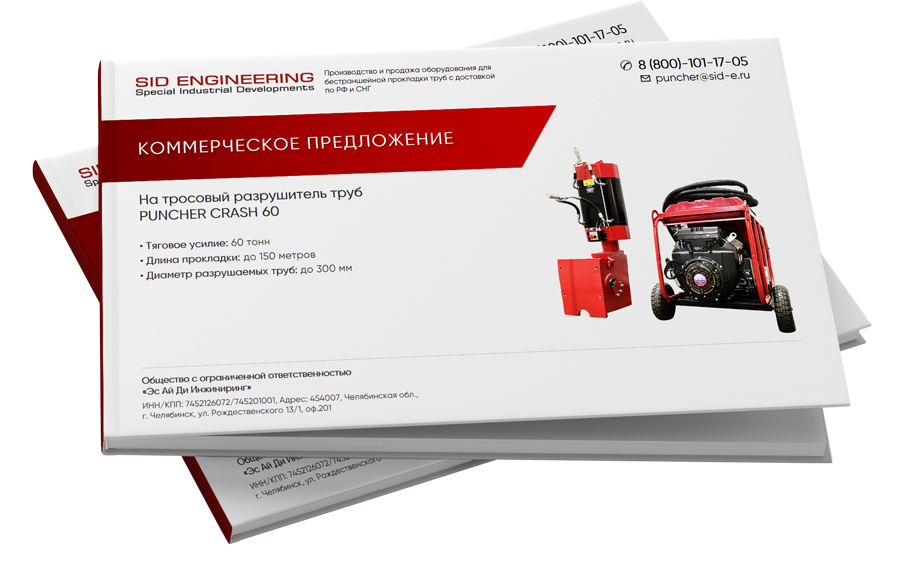 Для преодоления сложных участков, таких как: нестандартные утолщенные труб, фланцы, муфты и т.п. мы комплектуем установку импульсным пневмоинструментом. Он позволяет значительно увеличить мощность оборудования, диаметры разрушаемых труб и скорость прокладки.