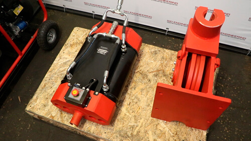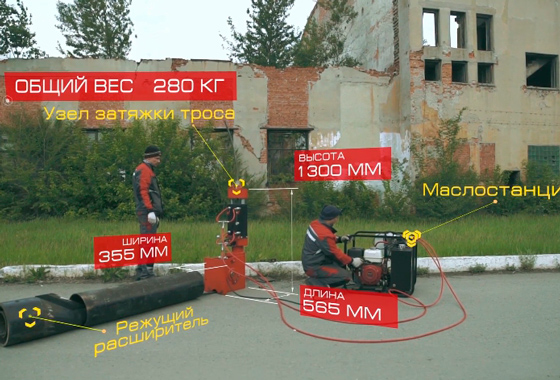 Основная силовая часть станка выдает усилие 60 тонн, что позволяет разрушать стальные, чугунные, керамические и пластиковые трубы диаметром до 300 мм.
