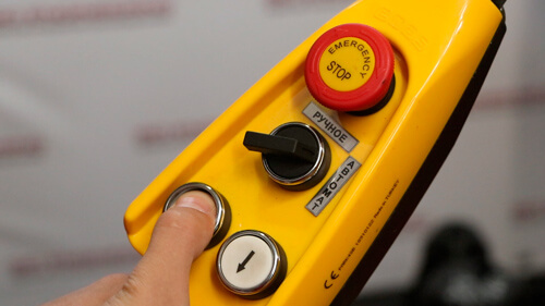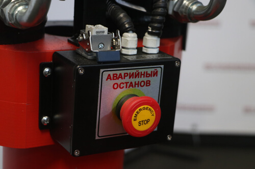 В целях безопасности на маслостанции, блоке цилиндров и пульте управления находится аварийная кнопка «стоп», которая моментально останавливает работу оборудования при нештатной ситуации.